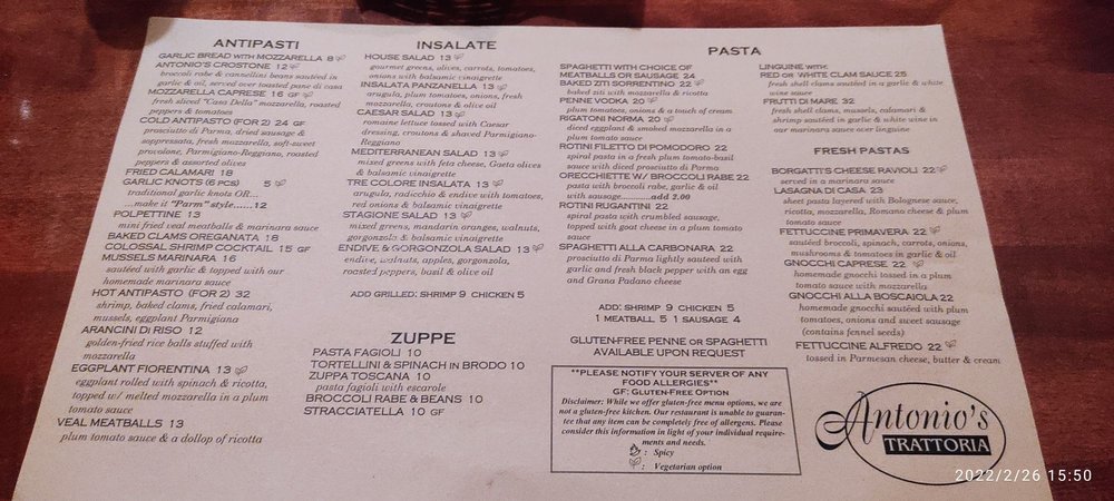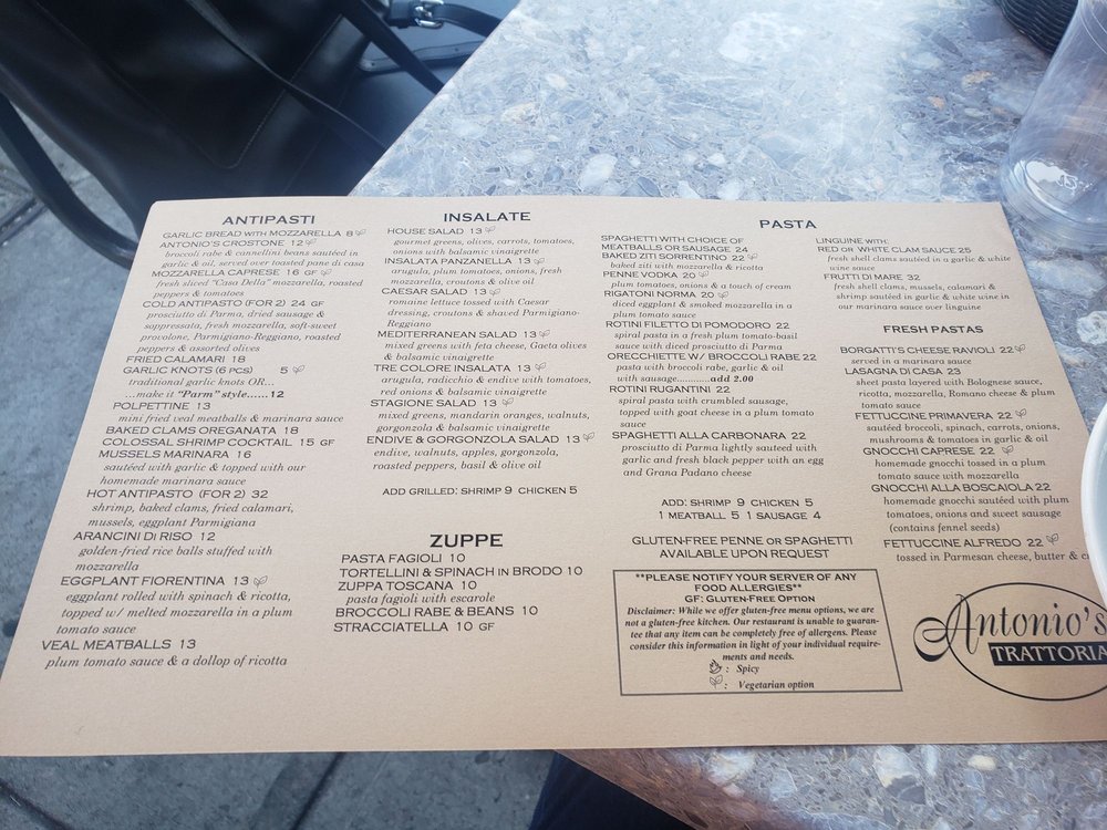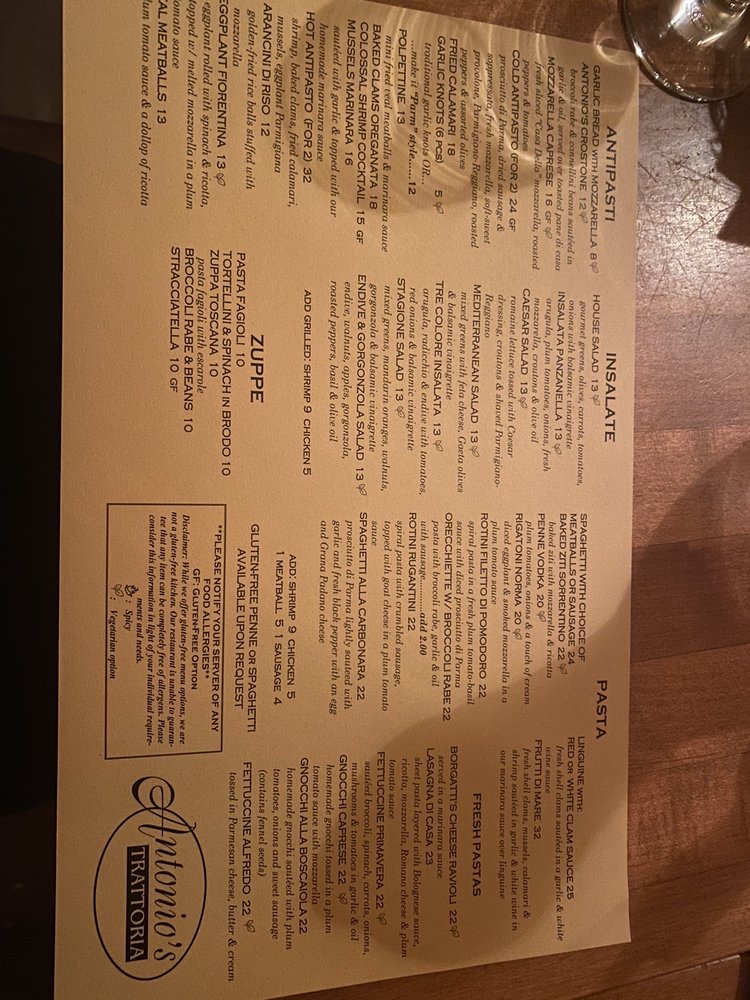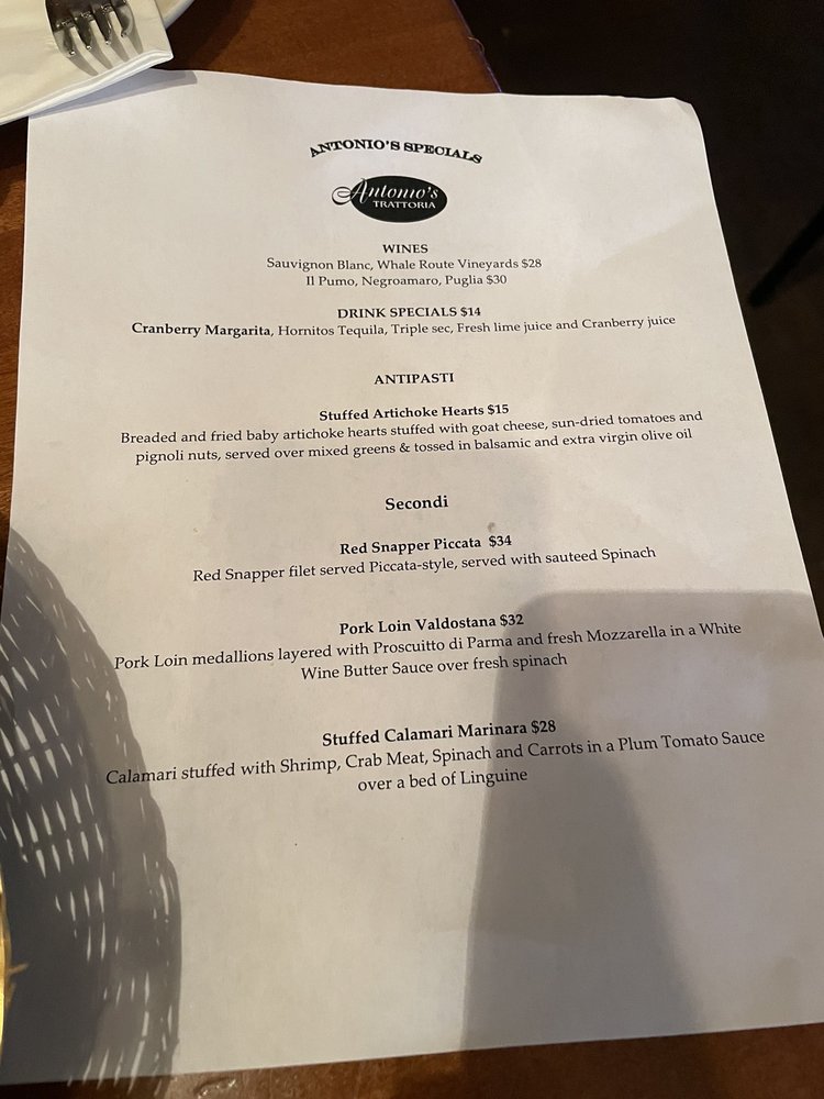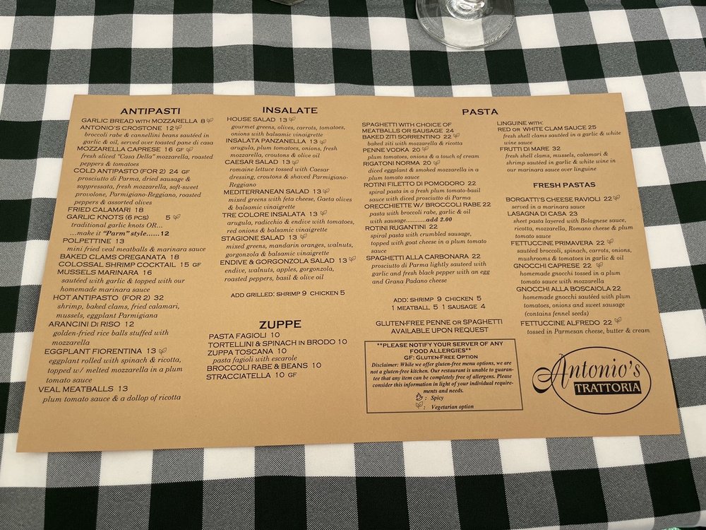 Antonio's Trattoria Menu (2025 Update)