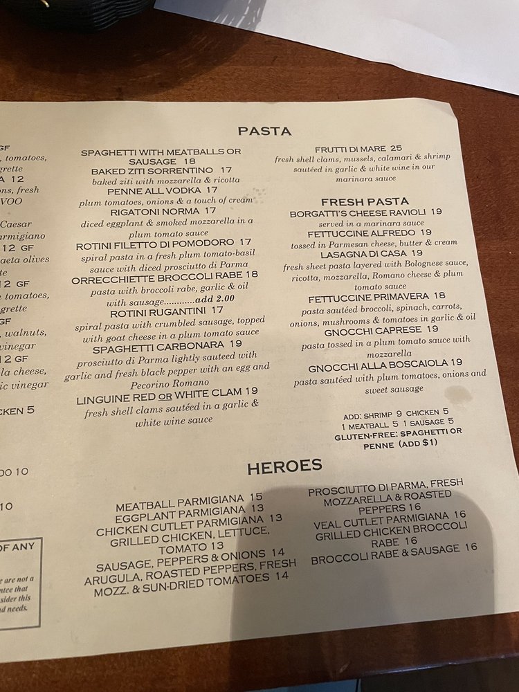 shrimp, baked clams, fried calamari, mussels, eggplant Parmigiana